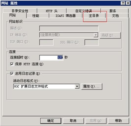 右击 “网站”,选择 “属性”,出现下面的截图: