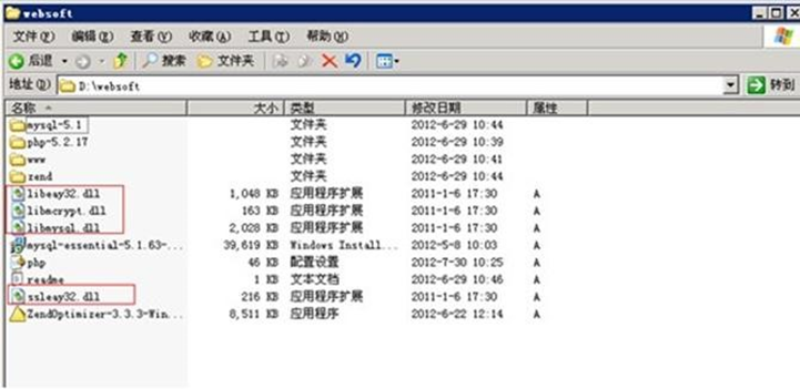 如图剪切 libeay32.dlllibmcrypt.dlllibmysql.dllssleay32.dl 这些dll文件到 “c:\windows\system32” 目录下,剪切图片中的 phpc:\windows 目录下: